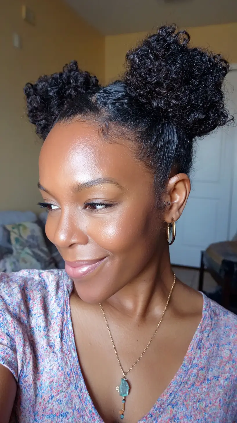 This playful style divides your hair into two buns on either side of your head. It’s youthful, fun, and perfect for festivals, casual days, or creative self-expression. Add hair cuffs, beads, or color for extra flair. It’s a joyful way to embrace your natural texture in a bold way.