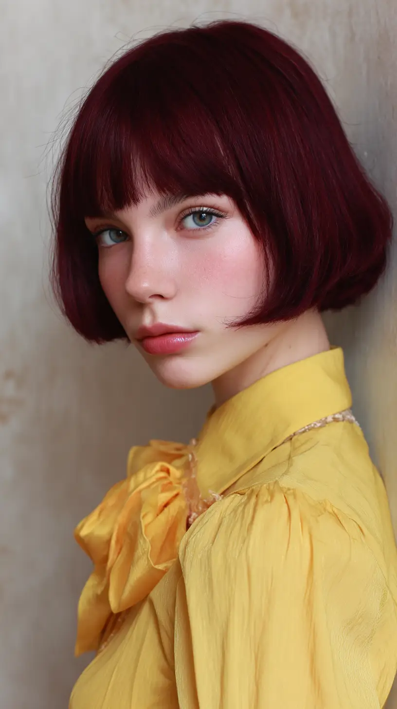 Micro bangs instantly elevate the twin bob look, giving it a retro yet artistic edge. These ultra-short bangs sit above the brows and draw attention to the eyes and cheekbones. Paired with a two-part bob, this style becomes something truly unique—perfect for those who like to stand out in a subtle yet powerful way.
