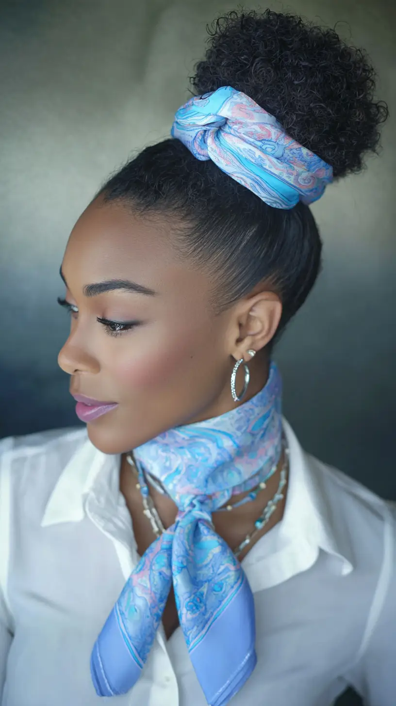 11. High Bun with a Silk Scarf