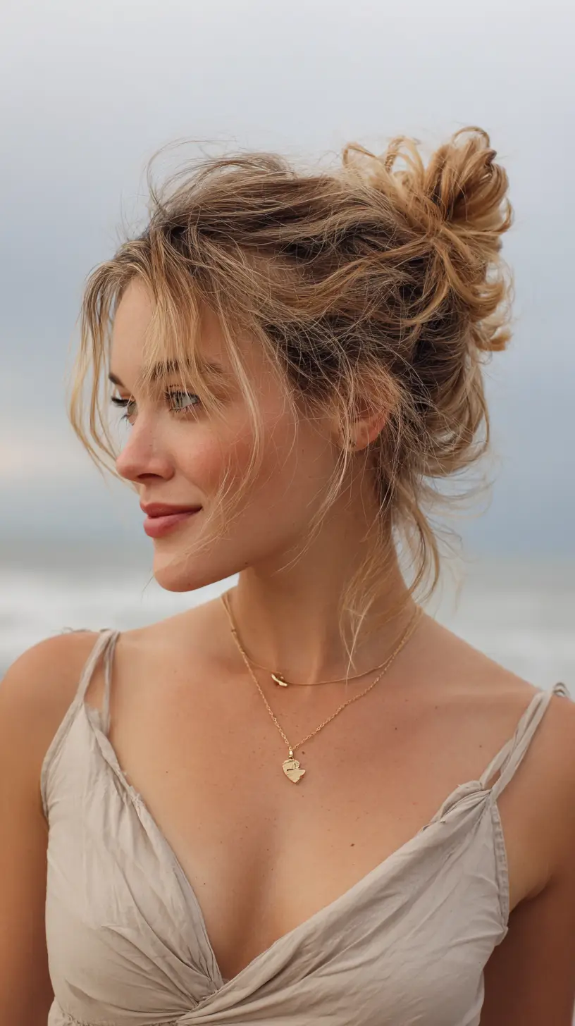 For those with naturally curly or coily hair, the curly high bun is a celebration of volume and texture. Rather than flattening your hair, this style lifts your curls and places them front and center, giving the illusion of a crown or halo. It’s perfect for showcasing your natural hair while keeping it off your neck and out of the way. To create this look, gather your curls high and let them puff freely into a bun. Add moisture before styling, and use a wide satin scrunchie or soft tie to avoid damaging your strands. Whether you’re dressing it up with earrings or keeping it minimal, this bun exudes power and softness at the same time.